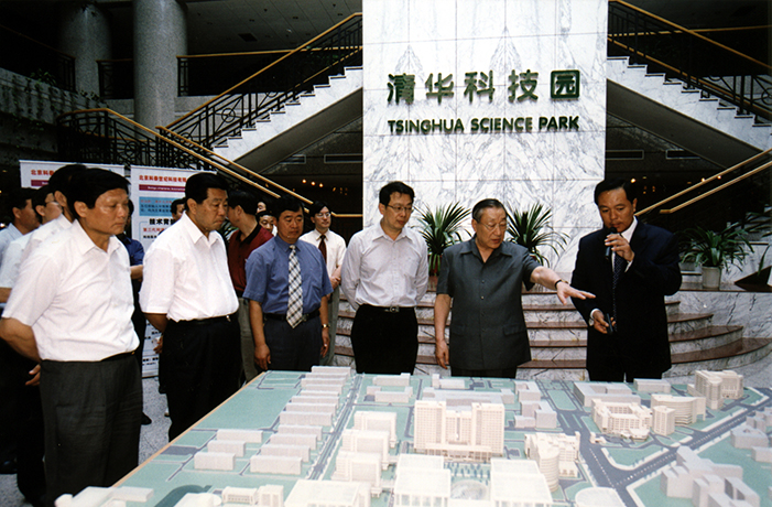 2002年,時任國務(wù)院副總理李嵐清、時任北京市市委書記賈慶林等視察清華科技園。