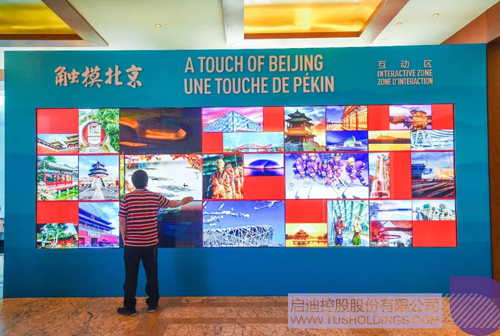 一大片觸摸屏引起了記者的注意。工作人員介紹,這是“觸摸北京”互動區,采用雷達感應多點觸控交互技術,可滿足5人同時觸摸滑屏翻閱,觀賞400幅展示北京城市形象的圖片。
